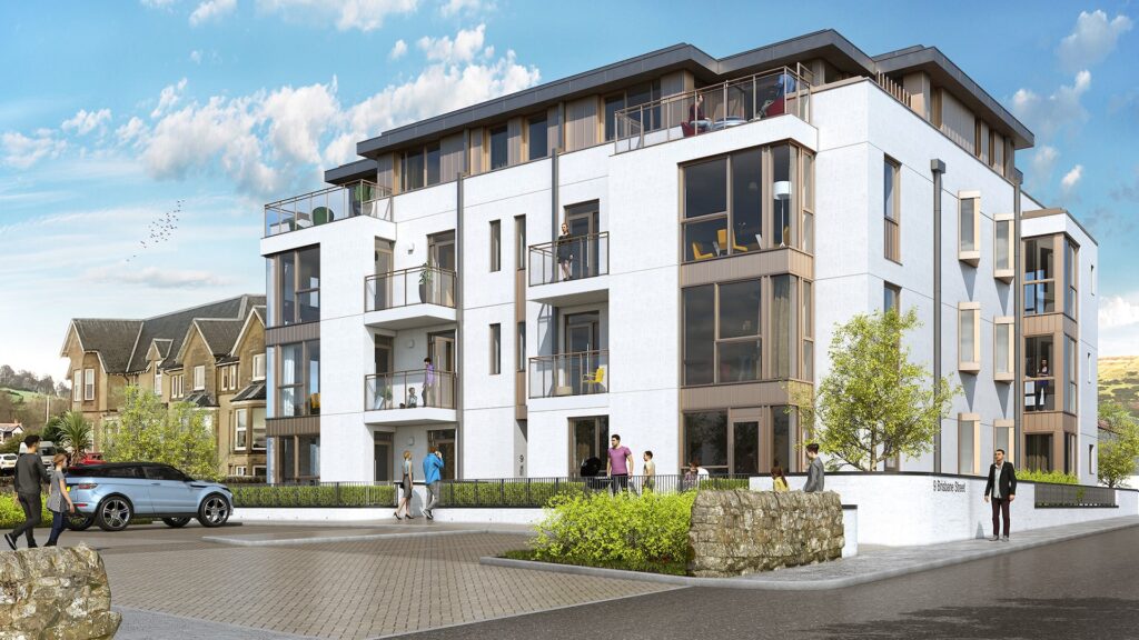 Located in the previous Queen’s Hotel lot on Largs’ stunning seafront, the Vista Apartment Block will offer 14 new two- and three-bedroom apartments and panoramic sea views to residents, providing a new source of vibrancy for the Largs community.